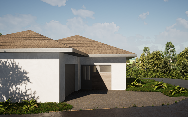 Dieser sehr kompakt entworfene Bungalow bietet für seine wenigen Quadratmeter überaus viel Platz. Optimal für eine Ein-Kind-Familie oder ein Paar das gerne Gäste empfängt.