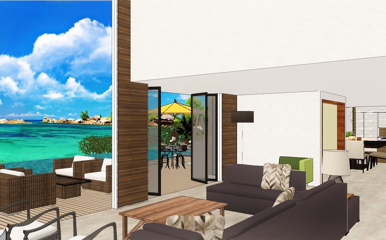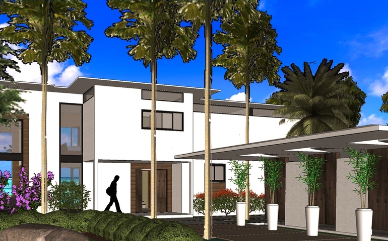 This cheerful home has been conceived as a perfect family retreat, designed to invite and absorb the environment into which it is built. On one side, all ambiences of this house, including the master bath, open up to the experience of a golf field, a beautiful beach, a lake or luscious Mountain View…, while incorporating the aromas and the light and the sky, engaging the senses. On the entry side, however, a more opaque façade, albeit elegant, and detached two car garage offer a more inconspicuous approach into the property, creating a delightful contrast against the aforementioned rewards awaiting on the other side of the front door.