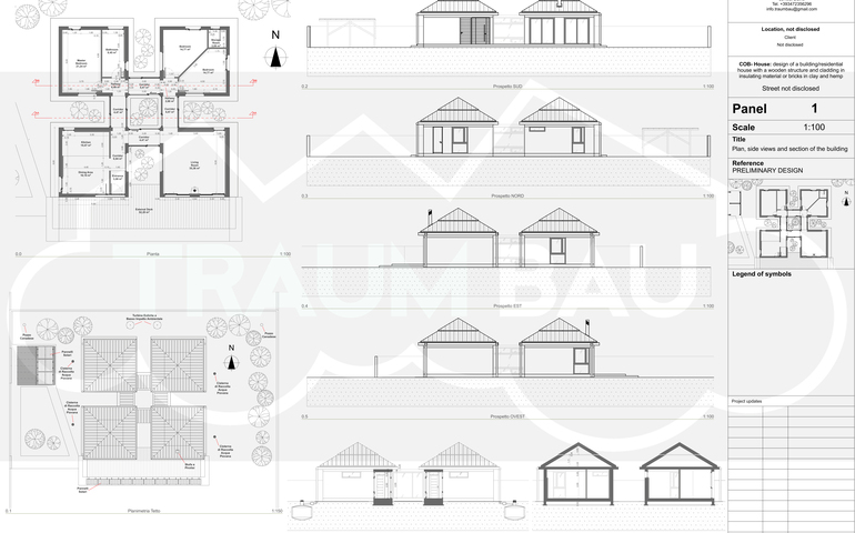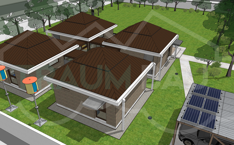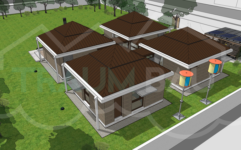 I was then asked to formulate an idea for houses designed for self-construction made of clay, hemp and sand bricks that develop a very low thermal conductivity of about 0.08 W / mK, made using a press tool developed by Mr. Naressi; the goal was to be 30 to 40% cheaper than traditional methods with a construction company, then to be sustainable, off-grid and potentially 100% passive.