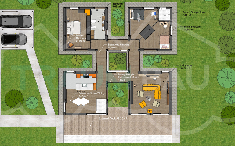 As previously said, thanks to the flexibility of the modules, there are infinite variations and customisation possible, according to the customer's needs. The images presented here are just an example of one of the many solutions.