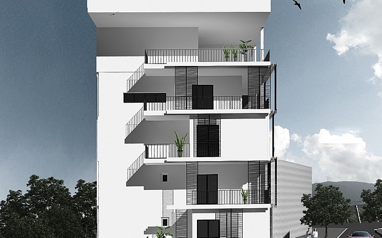 Das Wohngebäude umfasst 10 Wohnungen mit unterschiedlichen Parametern (vom offenen Raum bis zur Anzahl der Räume usw.) und Terrassen sowie eine Tiefgarage für Parkplätze, die der Anzahl der Wohnungen entsprechen. Die Räume werden unter Berücksichtigung der Orientierungen, Diskretionen, Gäste, Zirkulation und auch Ansichten festgelegt.