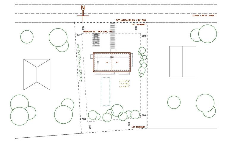 The house with total area of 145,75m2 is situated on a land of 1546m2. South and East facades are opened to very well organized green yard. The main entrance is from the North. It’s a one storey house with wood( or steel ) frame construction – columns and