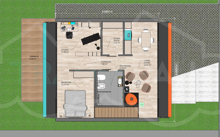 It is designed to be placed outside the chaotic and fast metropolis to rest, enjoy life and relax, recharge the batteries, ready for a bunch of new adventures in the city.