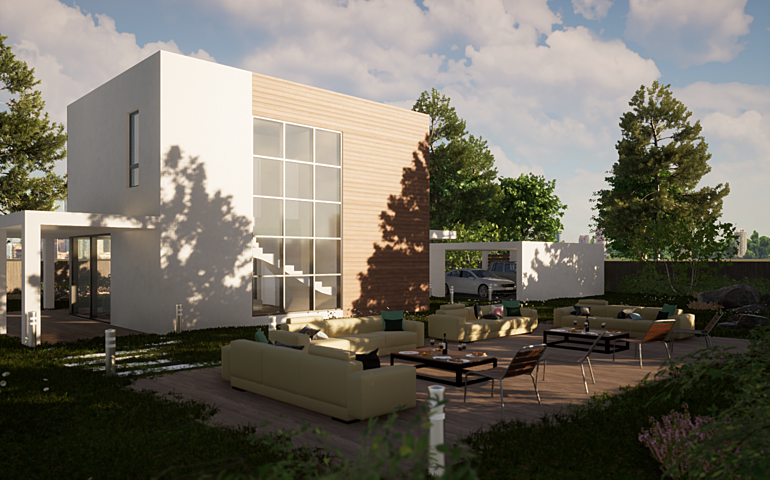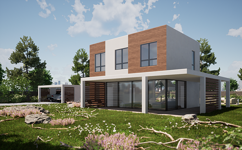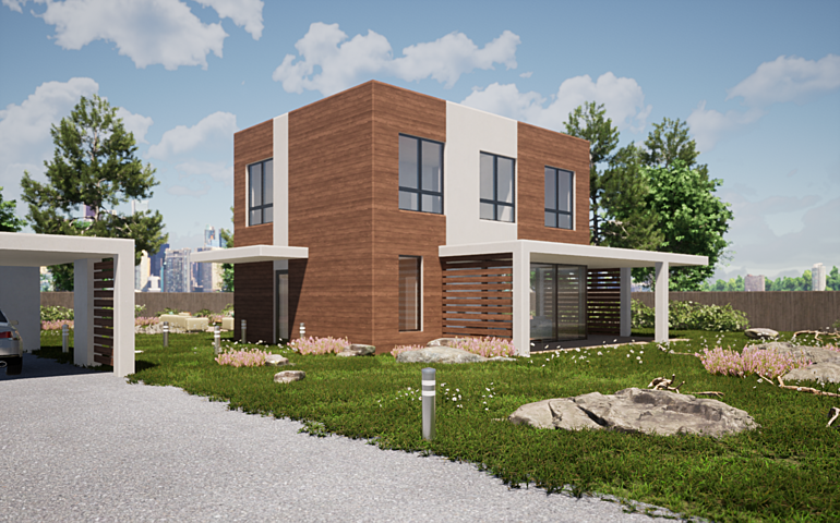 Das Haus hat ein einfaches jedoch modernes Erscheinungsbild. Auf dem Gelände befindet sich ein überdachter Parkplatz für 2 Autos. Der gesamte Innenraum ist ergonomisch und praktisch. Der Wohn- und Essbereich schafft einen erstaunlichen Raum für die tägliche Kommunikation einer Familie.
