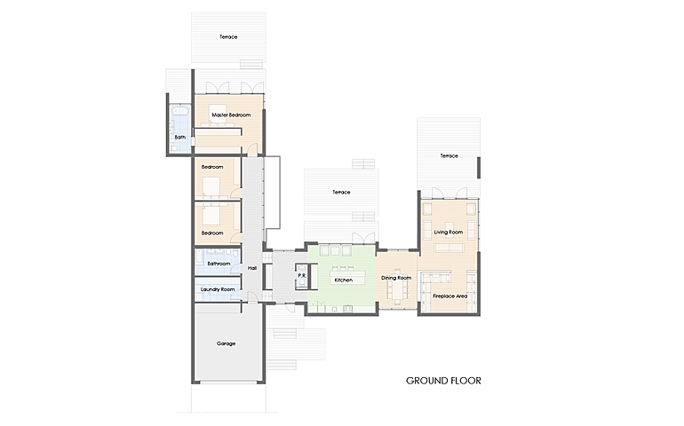 This house is designed to be an organic shelter for a single-family. The layout creates visual communications between the different spaces that are naturally flowing into each other.